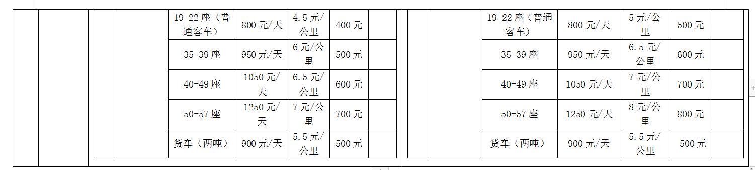 更正內(nèi)容:招標(biāo)文件中,所有租車價(jià)目表以更正后內(nèi)容為準(zhǔn):