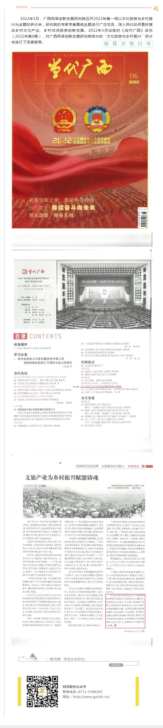 同澤研究院“文化旅游與鄉(xiāng)村振興”研討會(huì)獲《當(dāng)代廣西》雜志報(bào)導(dǎo)