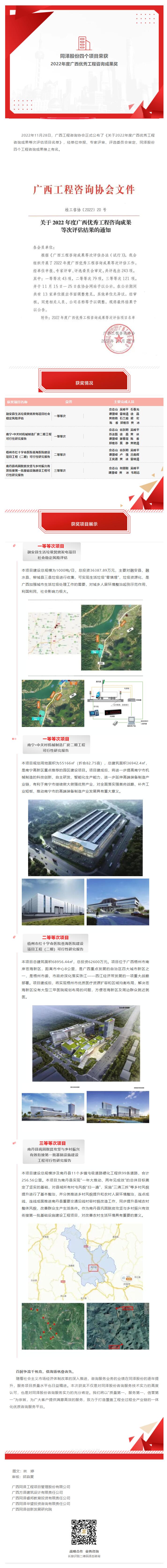 喜訊 | 同澤股份四個項目榮獲2022年度廣西優(yōu)秀工程咨詢成果獎